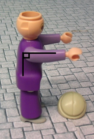 First always take off any hair and ornaments. Raise the arms to a right angle from the body. I use a vice with a soft rubber grip.